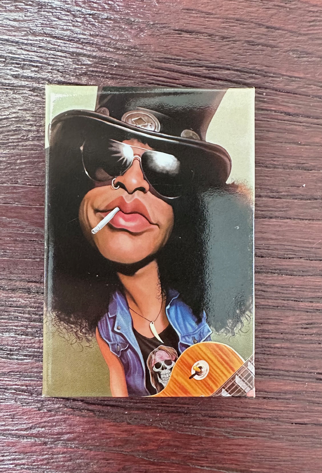 Magnet Slash – le mythique guitariste de Guns N’ Roses, avec son chapeau haut-de-forme et son aura électrique.